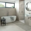 In a muted shade, the concrete look of the rectangular Tekno™ bone tile evokes the aesthetic of NYC skyscrapers. The city’s skyline has continued to rise since the 1850s, when mass manufactured steel was combined with concrete to create New York’s urban architecture. With their industrial appearance and restful light cream colour, these rectangular matt tiles will add a subtle take on a metropolitan look into your home. The range includes tonal variations, so no two pieces are alike. Please note that these tiles shouldn’t be placed in wet rooms.